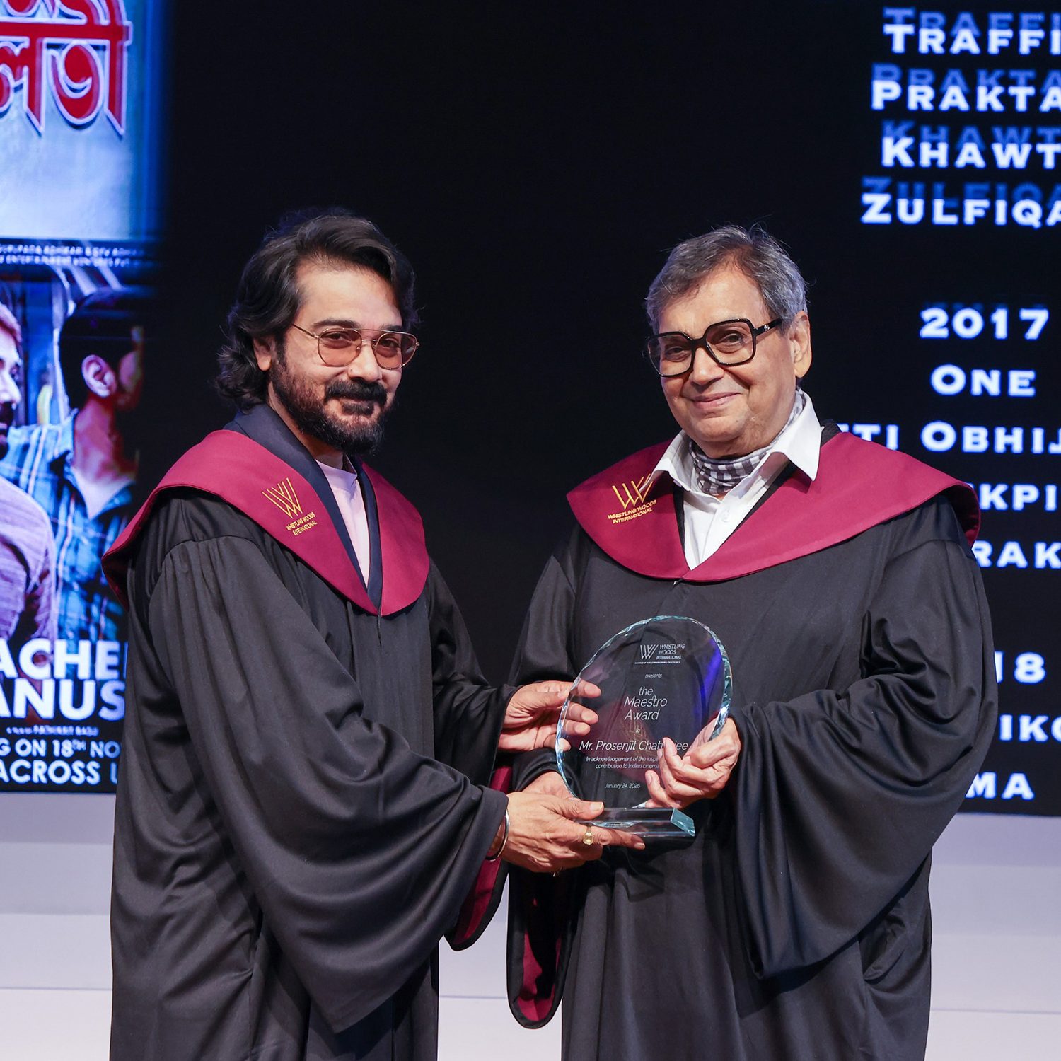 Indian Cinema Icons Inspire the Next Generation at Whistling Woods International Convocation 2026. Anil Mehta and Prosenjit Chatterjee Conferred Maestro Awards