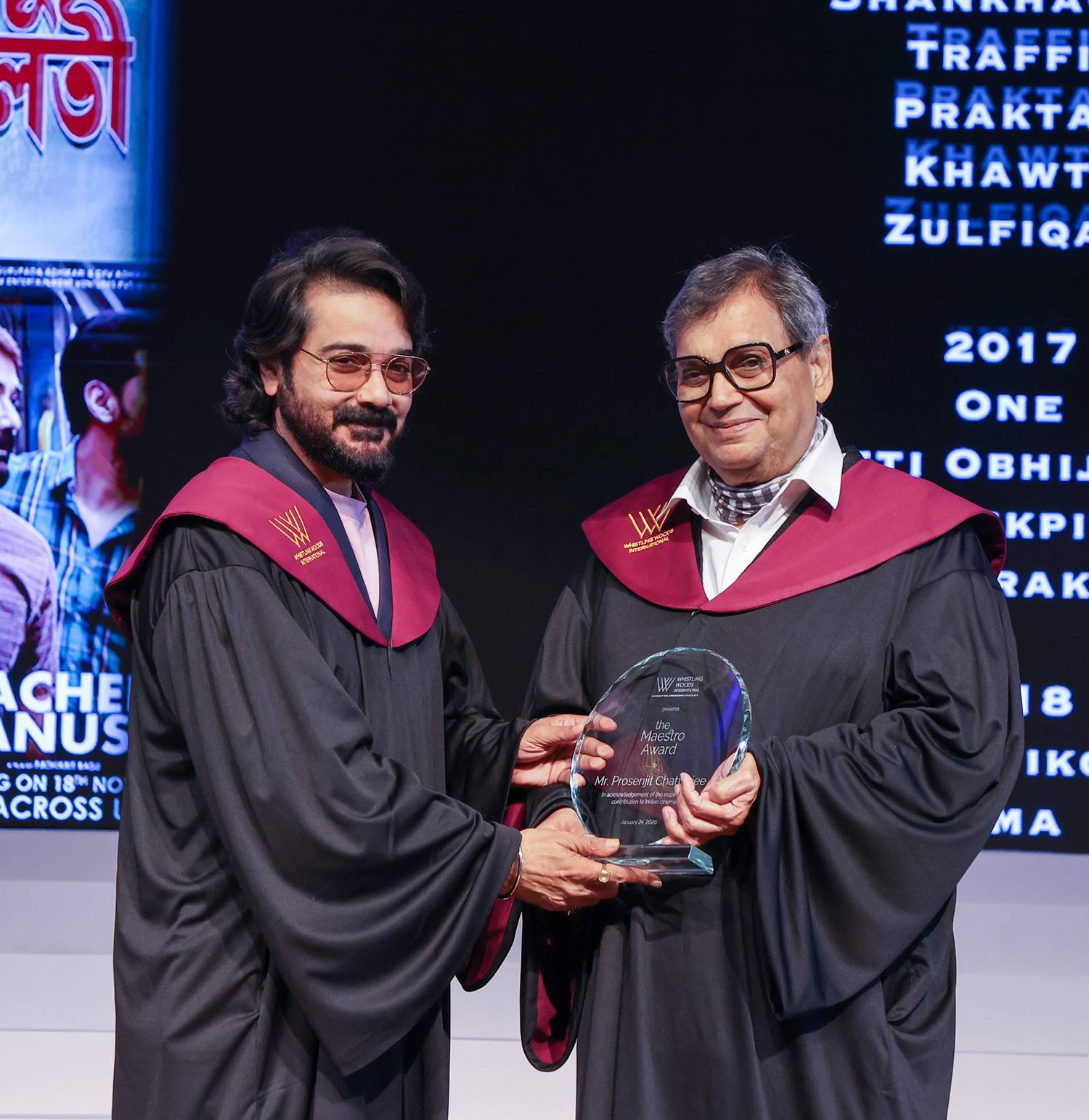 Indian Cinema Icons Inspire the Next Generation at Whistling Woods International Convocation 2026. Anil Mehta and Prosenjit Chatterjee Conferred Maestro Awards