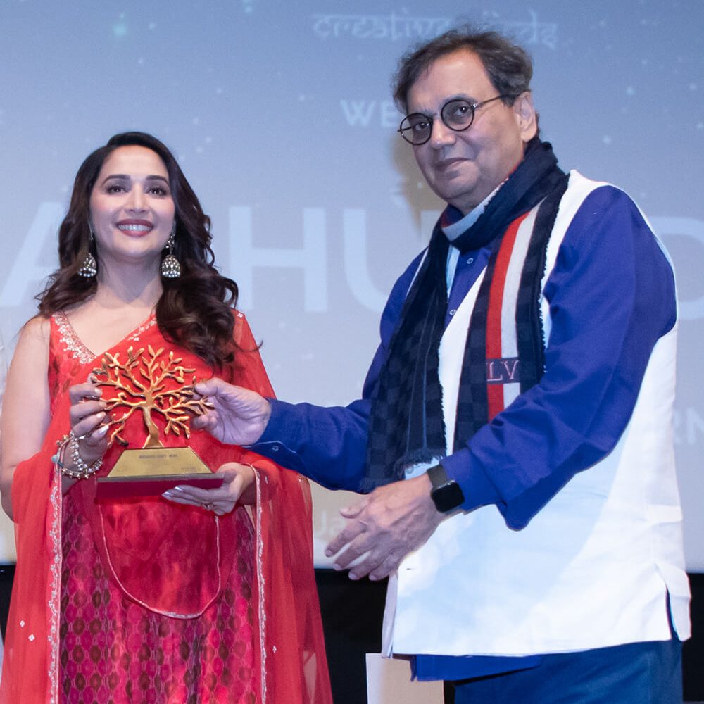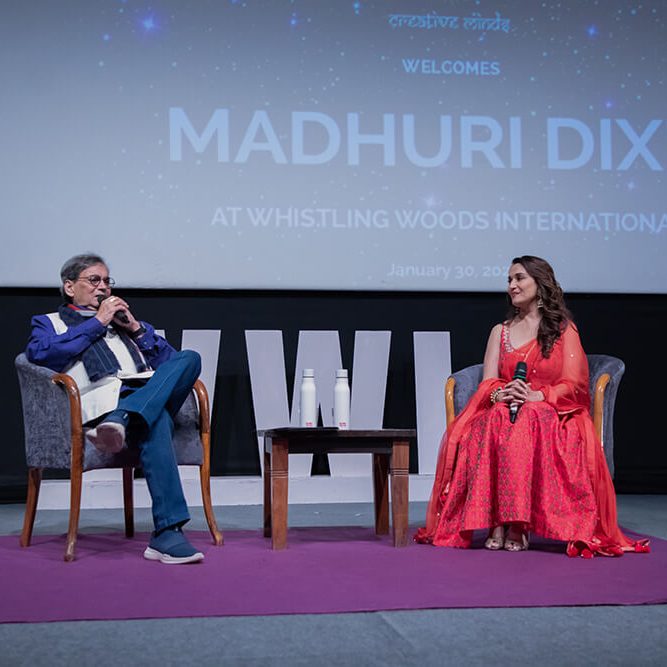 As the interaction continued, Mr. Subhash Ghai took the opportunity to praise Ms. Madhuri Dixit-Nene for her immense talent, and stated, “Madhuri is one of the best actors that I have met. She has the eagerness to excel, work tirelessly towards her domain. She is also very humble and passionate about her work. Madhuri is not only a legend but a great human being.” Ms. Madhuri Dixit-Nene subsequently complimented Mr. Subhash Ghai on his achievements with regards to WWI, and said, “Thank you for having me, because I have seen the amazing work you’re doing here. The students are given the opportunity to learn different aspects of filmmaking, from designing and VR to scripting and acting – everything under one roof. These are the opportunities we didn’t have and it’s wonderful to see such excited youngsters here. I hope we create world-class filmmakers from WWI.”