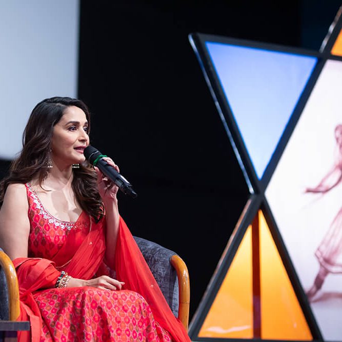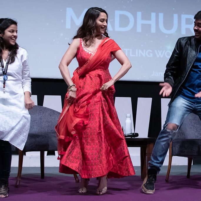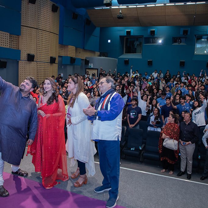 When questioned on how she managed her personal and professional lives, Ms. Madhuri Dixit-Nene shared, “I compartmentalise.” She further shared with the students valuable learnings on maintaining a perfect work-life balance. Besides, she mentioned how yoga and meditation help in maintaining a balance between body and mind. As the evening progressed, she shared several interesting anecdotes from her movies. The highlight of the evening was her dance performance with the students, which left everyone in the auditorium exuberant.