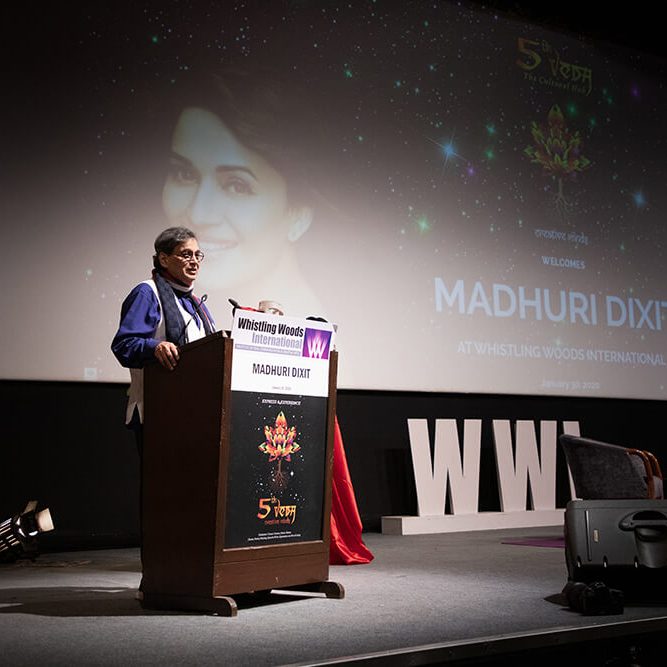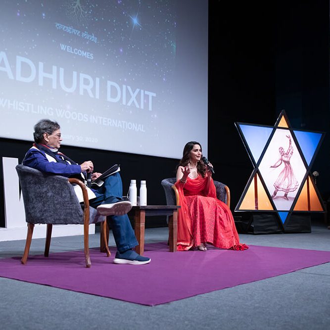 Ms. Madhuri Dixit-Nene rocked it with students of Whistling Woods International at the 5th Veda Cultural Workshop. Shared her journey with aspiring creative professionals
