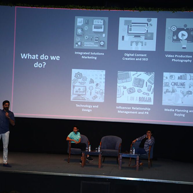 The session began with Mr. Akshay Gurnani elaborating on the various aspects that Schbang offers to its diverse clientele. Mr. Akshay Gurnani shared the story of how his organisation added various functionalities – integrated solution marketing, digital content, video production and photography, digital content creation and SEO, influencer relationship management and public relations, and media planning and buying with time.