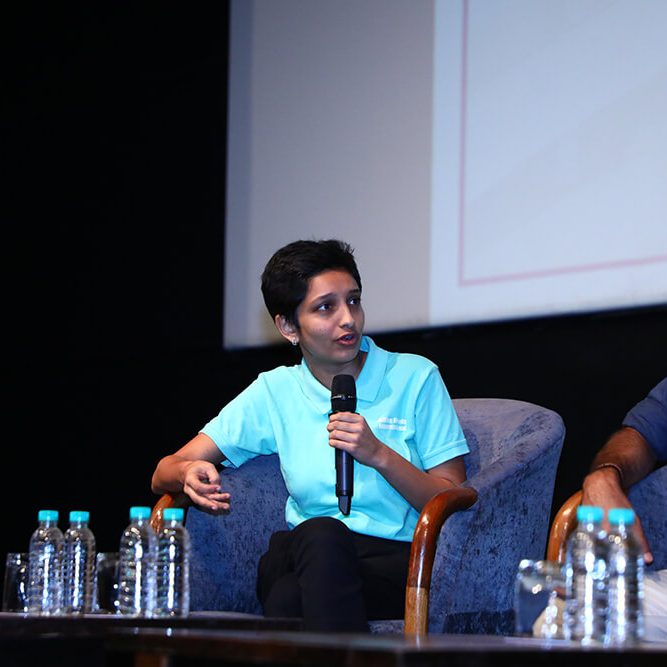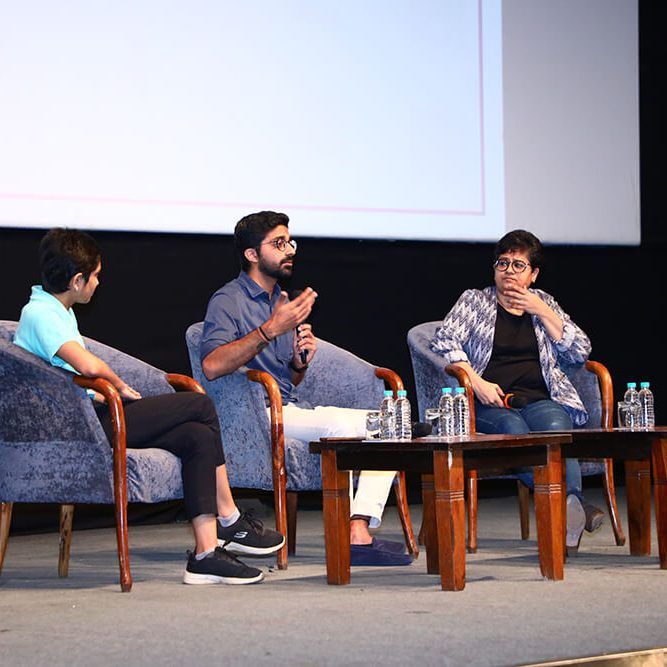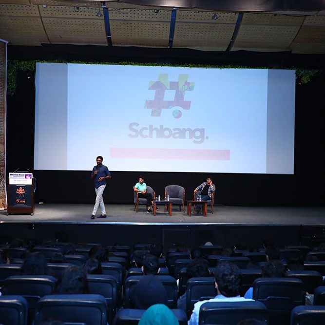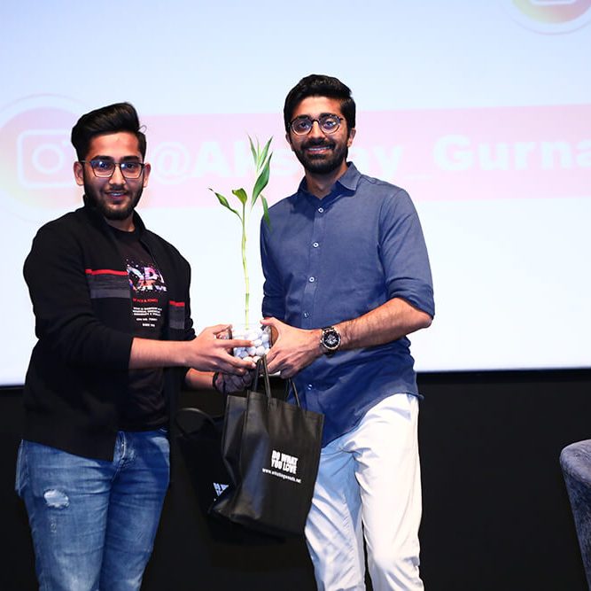Mr. Akshay Gurnani went on to share his thoughts on the role of organisational culture in running an effective business. His response lifted the spirits of the listeners, for as he stated, “An organisation’s culture plays a key role in keeping employees motivated. After all, a happy employee is a dedicated, motivated employee.” He then took the opportunity to showcase his company’s work. The enthralled students were treated to a series of videos featuring Jacqueline Fernandez produced for Raw Pressery, which highlighted the role short videos play in conveying the brand’s messaging. Other videos shown to the audience showcased Schbang’s work for brands like Xiaomi and Fevikwik. As words of advice, he highlighted the importance of crisp content with a quirky or an emotional twist to connect with the target group.