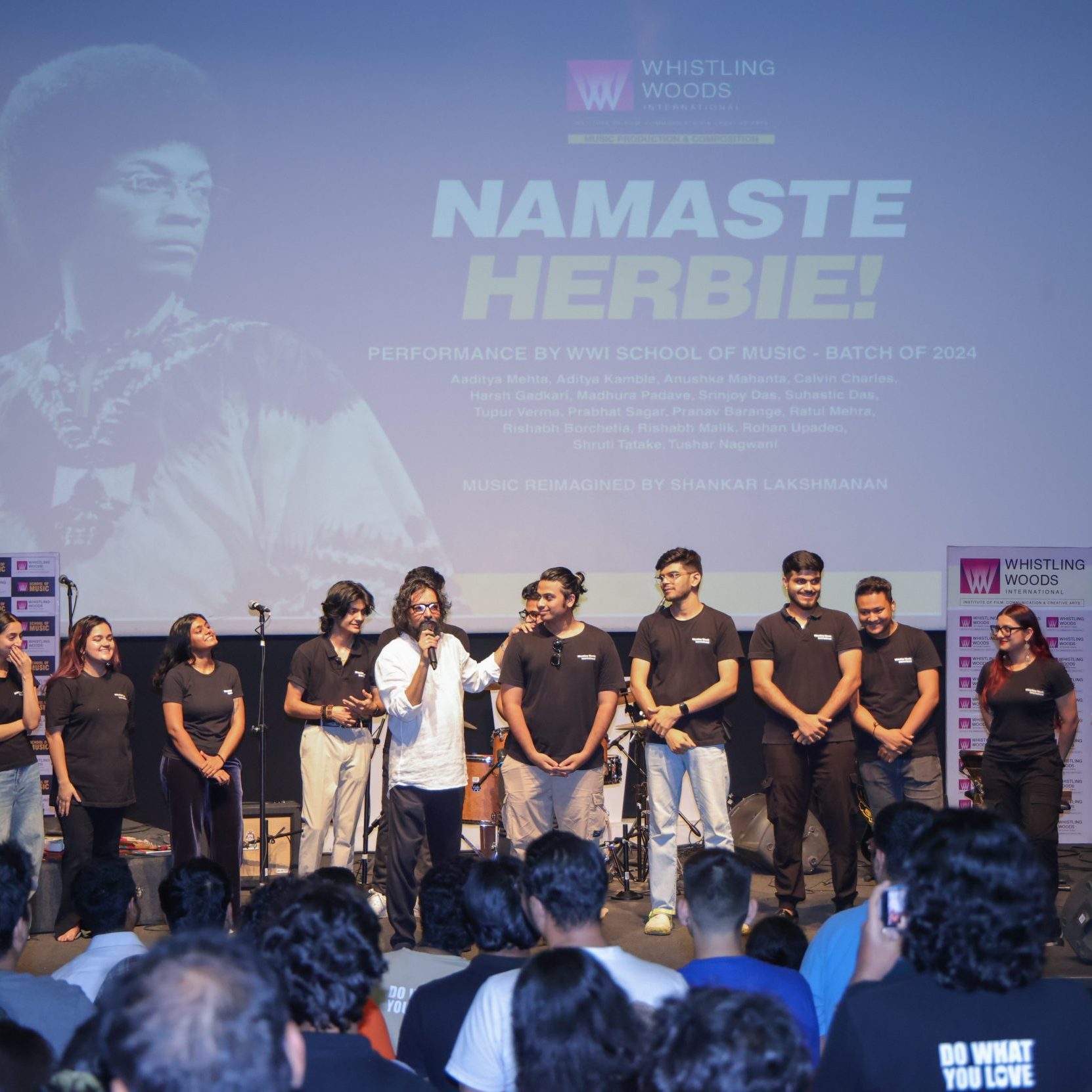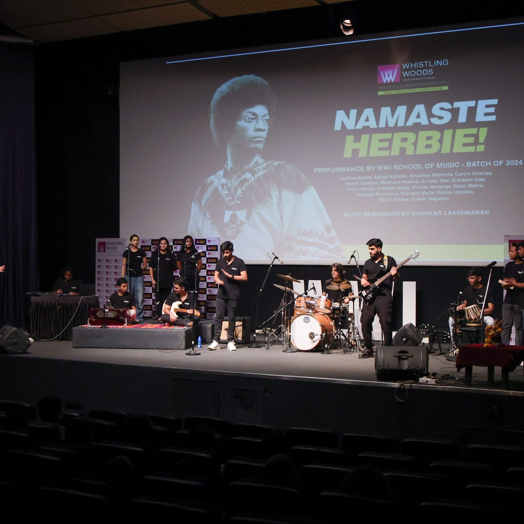 Whistling Woods International School of Music students experienced a remarkable opportunity to witness the legendary Jazz musician, Herbie Hancock at the NCPA. Originally scheduled to attend his masterclass, the excitement peaked when the event organisers proposed WWI Music students to perform for him. This unexpected invitation led to the assembling of a student band, who rehearsed diligently for days. To perform, alongside the talented students from the Herbie Hancock Institute of Jazz, in the presence of the maestro along with award-winning vocalist, Dianne Reeves was no less of a surreal moment. Being part of such esteemed company was an immense honour, allowing for not only witnessing the brilliance of Herbie Hancock and his phenomenal band but also gaining invaluable insights from him and Dianne Reeves, culminating in an unforgettable performance.